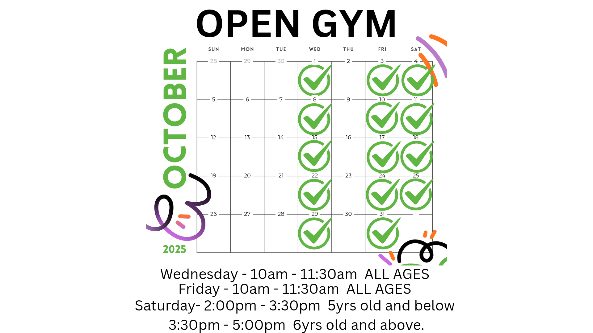 NO SATURDAY OPEN GYM TILL FALL